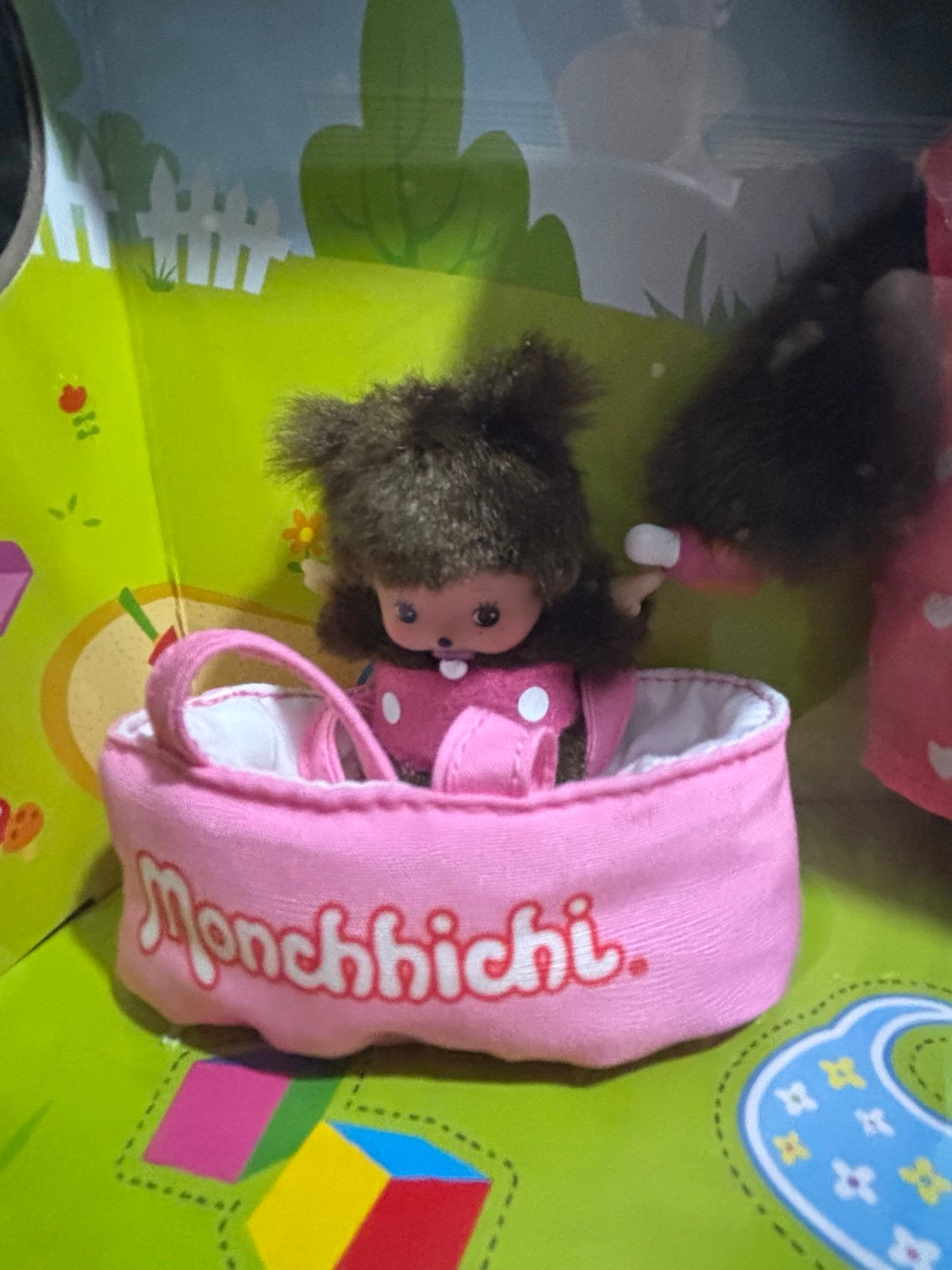 The Monchhichi Sekiguchhi Mother 8 inch with Bebichhichi Baby in Carrycot Collectors Edition Set. This collector's edition. The Sekiguchhi Mother doll, standing at 8 inches tall, comes with her baby mini Bebichhichi in a carrycot, adding a touch of sweetness to the overall design. Perfect for collectors and fans of monchhichi dolls, this set offers a unique and adorable display piece.