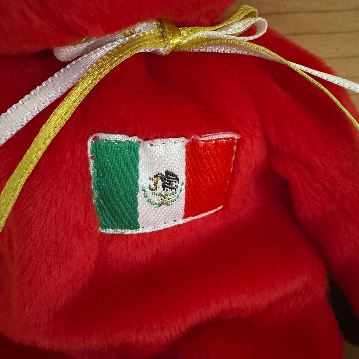 ULTRA RARE TY Beanie Baby 1st Edition Red Mexico OSITO 1999 P.E. Pellets with Tag Errors