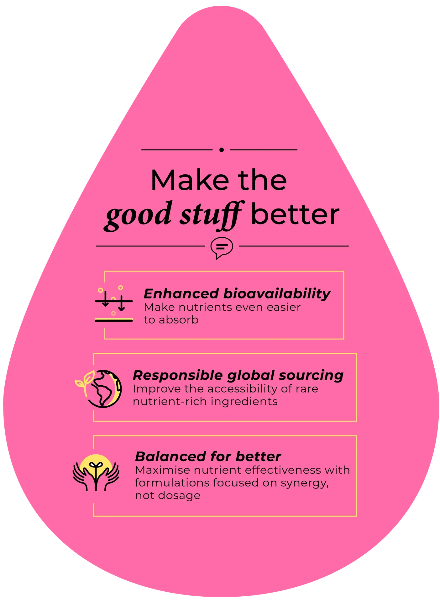 Good food is all about good balance. And when it comes to our functional foods, good balance is all about synergising every ingredient to work in harmony with each other, making the nutrients more efficient and easy for the body to absorb.