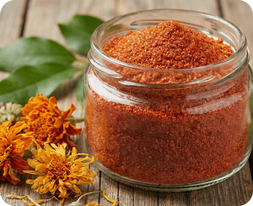 Lutein and zeaxanthin extracted from marigold flowers through patented process. It offers superior absorption and retention, staying in the retina for up to 24 hours. Produced under strict quality control in a cGMP-certified, zero-contamination facility for consistent purity and effectiveness.